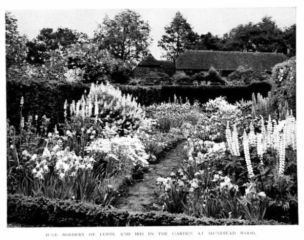 June borders of lupin and iris in the Garden at Munstead Wood from Gardens for Small Country Houses