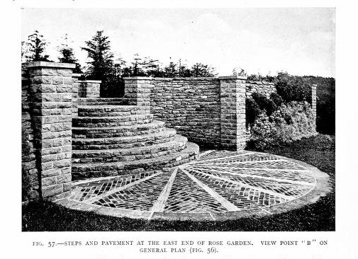 Circular tank and steps at west end of rose garden. Point of view “A” on general plan.