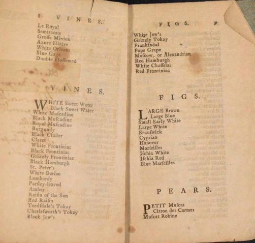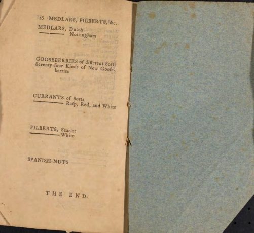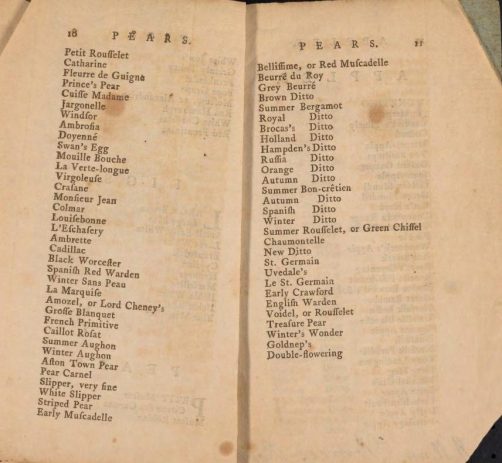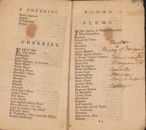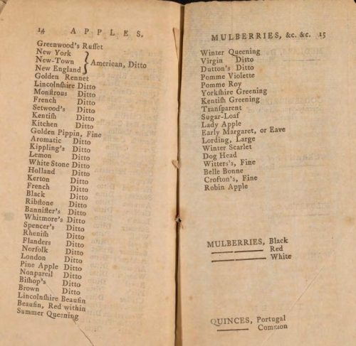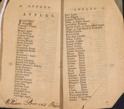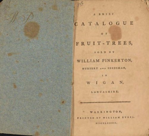 William Pinkerton’s Catalogue of Fruit Trees, Wigan, Lancs 1782