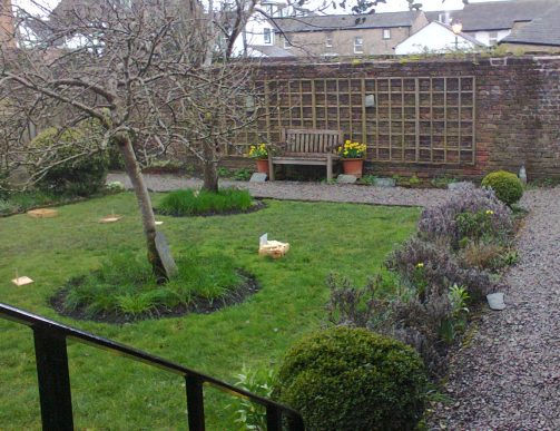 On a damp, grey day in early April it’s not every garden that tempts visitors to linger. But when I visited the walled garden at Wordsworth House in Cockermouth, Cumbria at the beginning of the month there was much to see of interest, as well as providing some welcome shelter from cold winds.