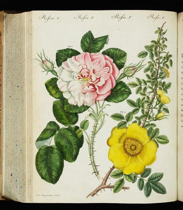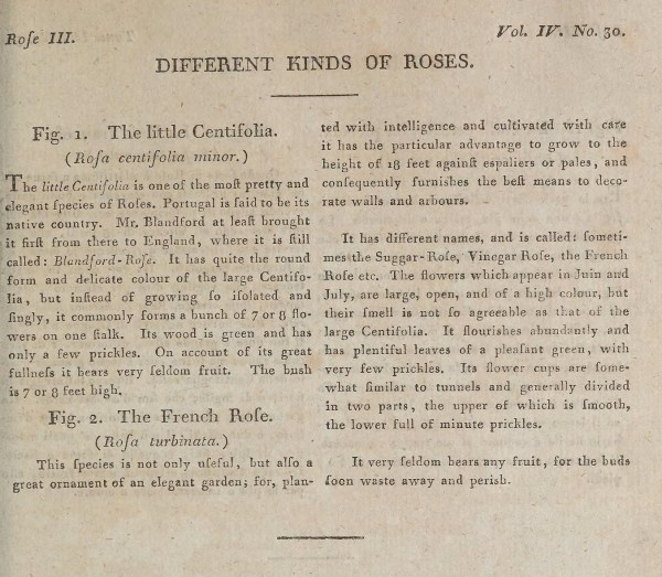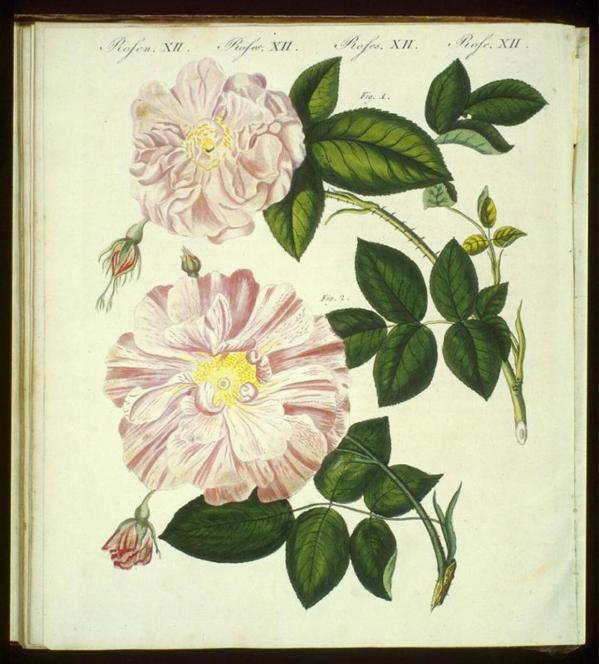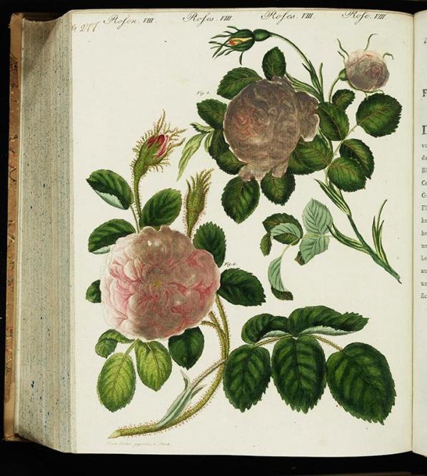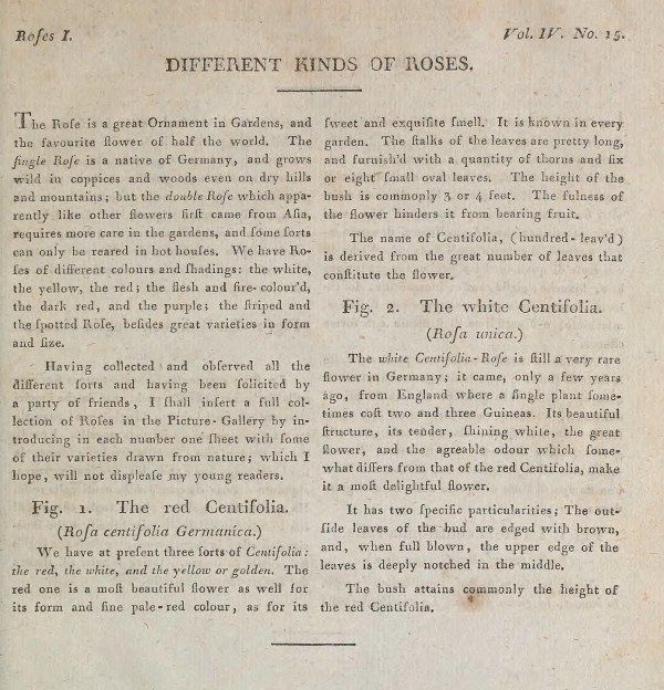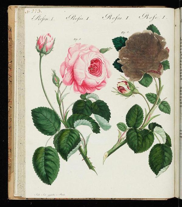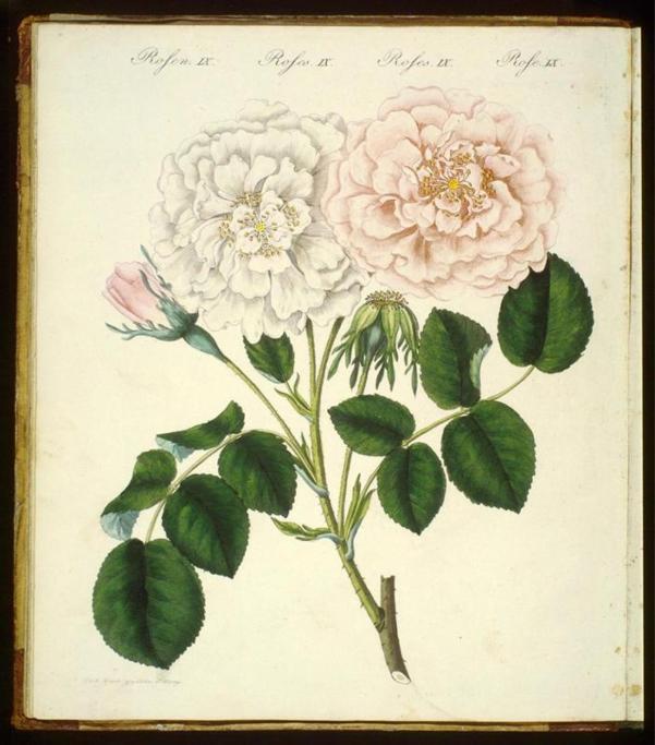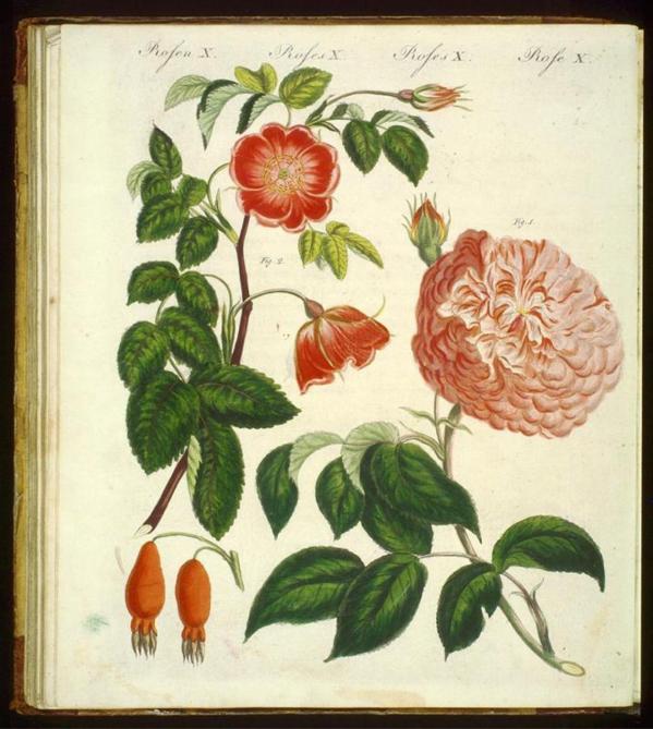 Fig 1. The red Centifolia (Rosa centifolia Germanica), Fig 2. the white Centifolia (Rosa unica) All images from Archive.org