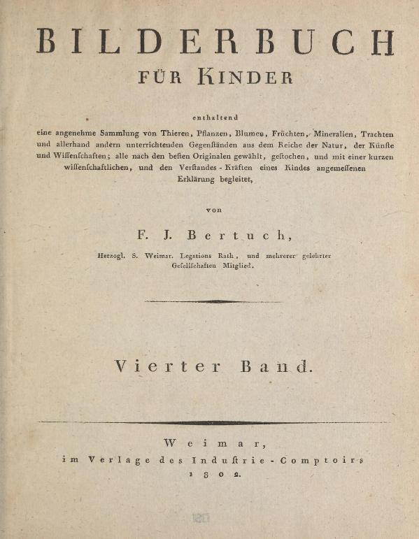 On the surface, Bilderbuch für Kinder or the Picture book for Children, published in Germany in 1802, might be seen as a classic example of this ‘mini adult’ genre. The vast range of topics discussed in this encyclopedia including animals, butterflies, birds, ships, national costumes, Roman ruins and volcanoes are serious adult subjects certainly, but here are presented for children in a way that represents the best in educational literature. Somehow the book levels with the reader, addressing children in straightforward language they can understand, and never patronising them. There’s an assumption everything will be of equal interest to both boys and girls, and the scope of the subjects discussed shows genuine ambition for readers to understand and take delight in the world around them.
