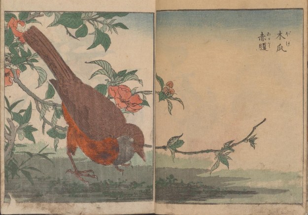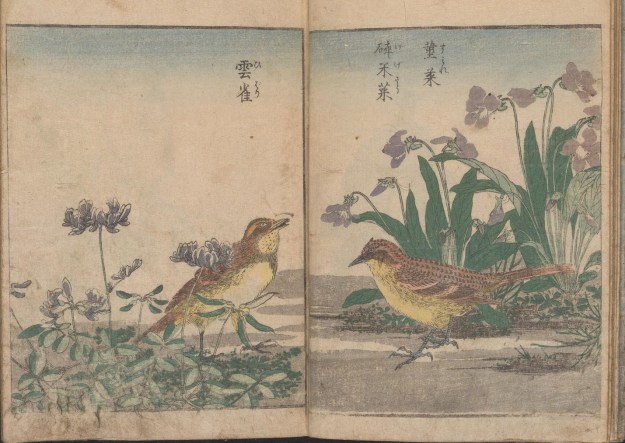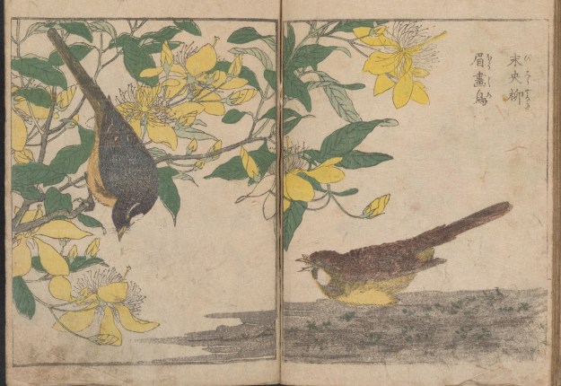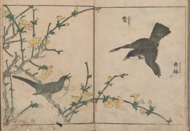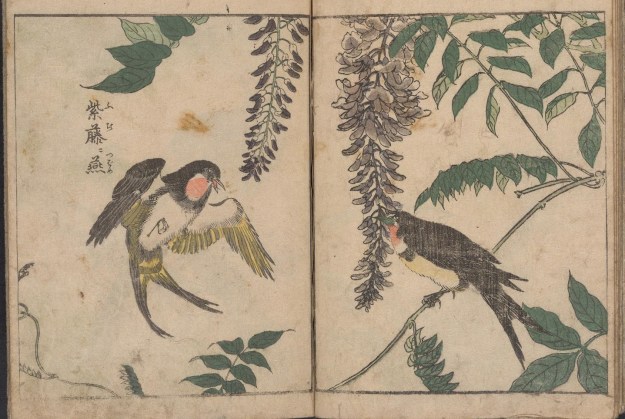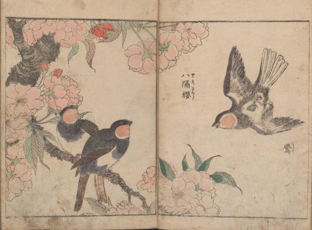 Birds with cherry blossom (Vol 1) from Kacho shashin zui by Kitao Shigemasa (1805). All images courtesy of the Smithsonian Institute via archive.org.
