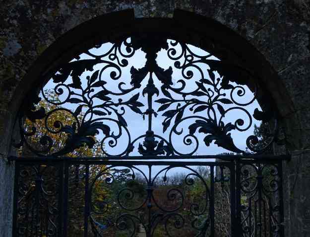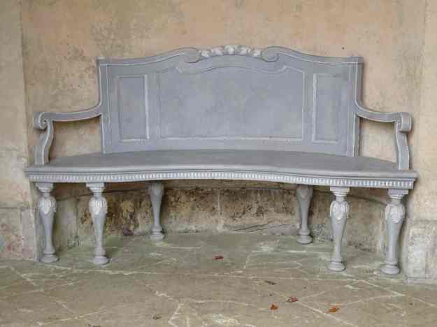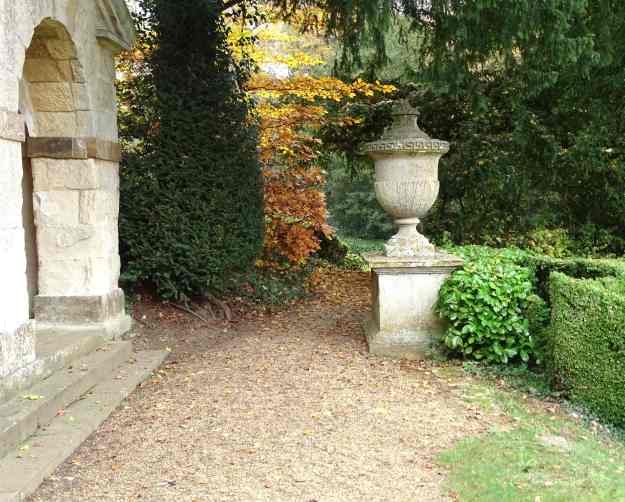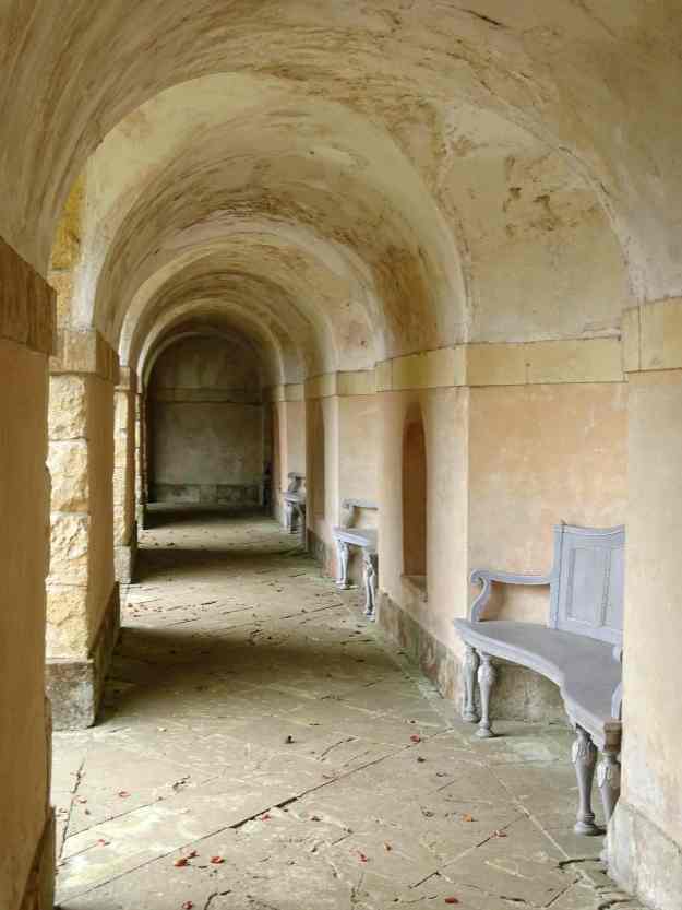 With fallen leaves carpeting the broad pathways in shades of bronze and gold, the colours of late autumn seemed to glow with an almost luminous intensity in the soft light.  The river Cherwell  meanders through the gardens, and views of this ancient waterway are framed by the elegant stone arches of Kent’s Praeneste, or arcaded garden loggia.  A set of 18th century wooden benches also designed by Kent, painted in a heavenly shade of grey, invite visitors to pause and enjoy the landscape vistas.
