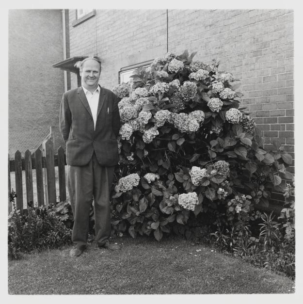 Gardeners (1978-79) is a series of forty black and white photographs by the conceptual artist Keith Arnatt (1930 – 2008), taken close to where he lived in Tintern, Monmouthshire.   Arnatt’s odyssey in search of the vernacular garden records ordinary people in their gardens, ranging from rural plots and allotments to post war housing developments.  As part of this process Arnatt also examines the connection between gardens and their owners, their relationship to the wider landscape, and what the domestic garden represents in our culture.