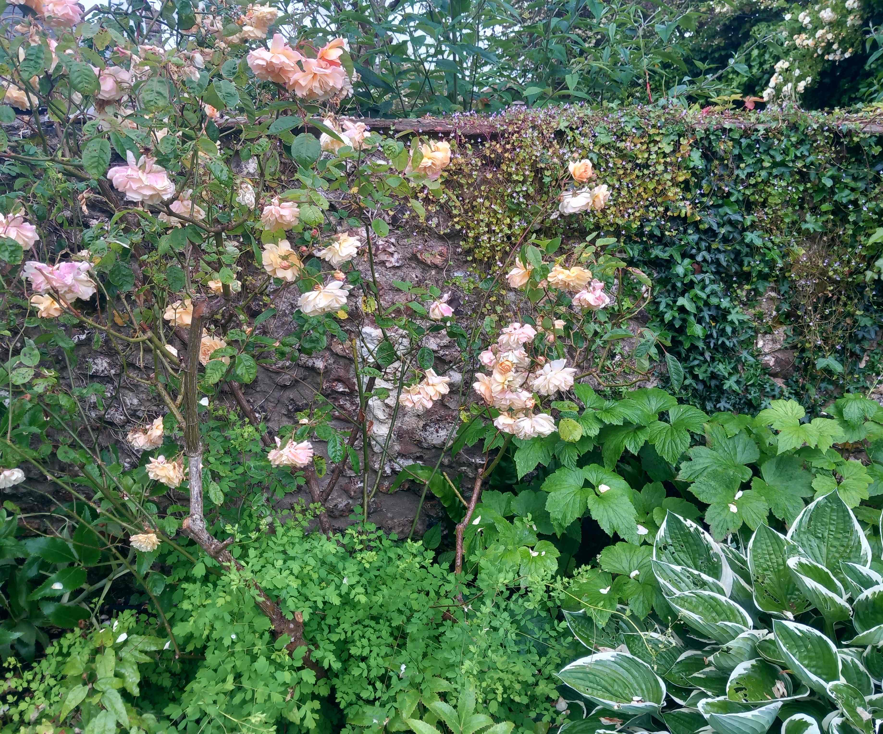 Deciding to start our journey in Abbey Street, we discovered the villagers’ love of roses, and how these plants thrive here in the local soil. At Barnwells the gardens behind the house are unexpectedly extensive. According to the owners, they cover approximately one third of an acre, and were designed by the artist Joseph Benwell Clark when he was a resident here in the 1920s. Using hedges of various heights, the space has been skillfully divided into rooms, the English garden style popularised by Lawrence Johnson at Hidcote and Harold and Vita Sackville West at Sissinghurst in the early part of the 20th century.