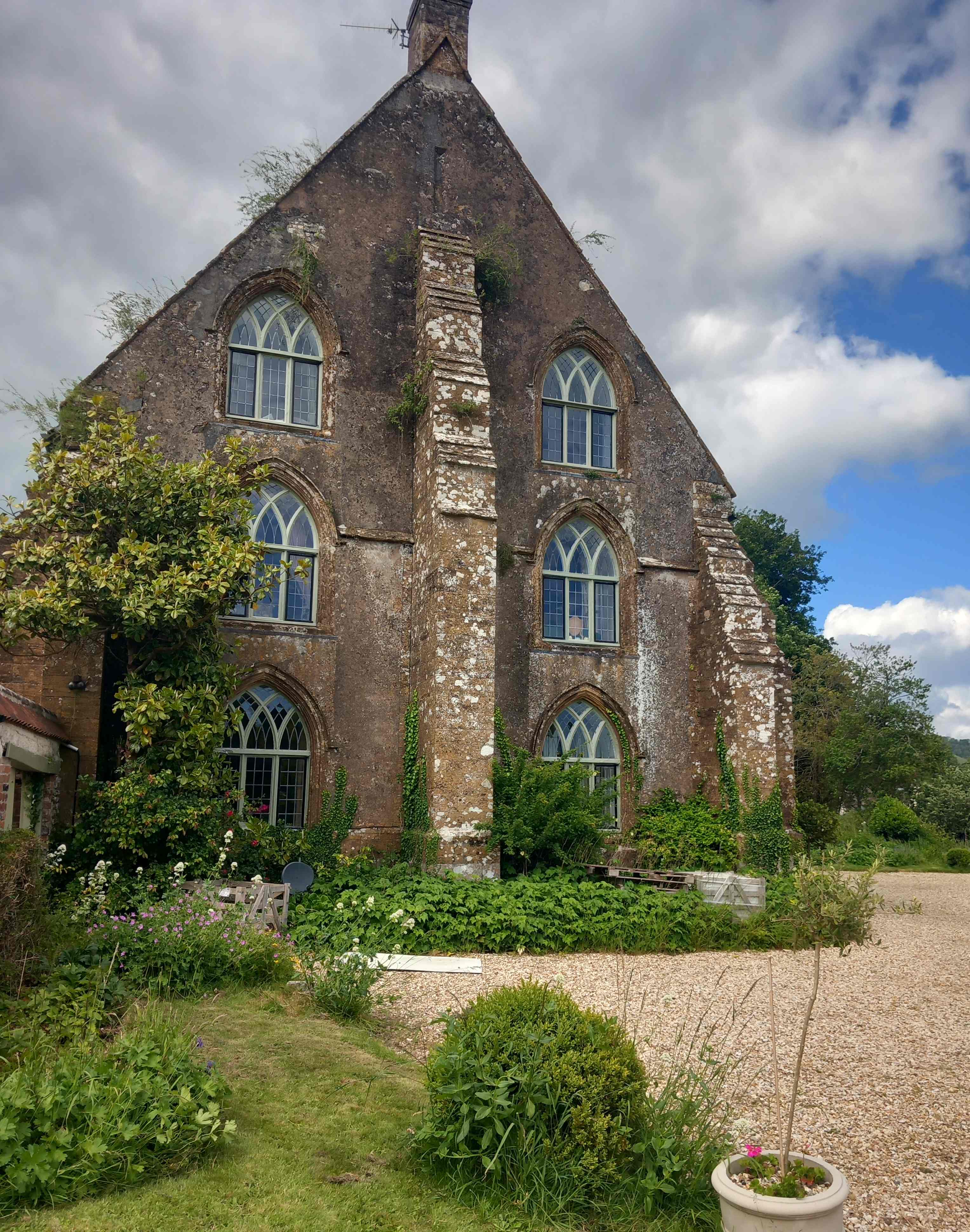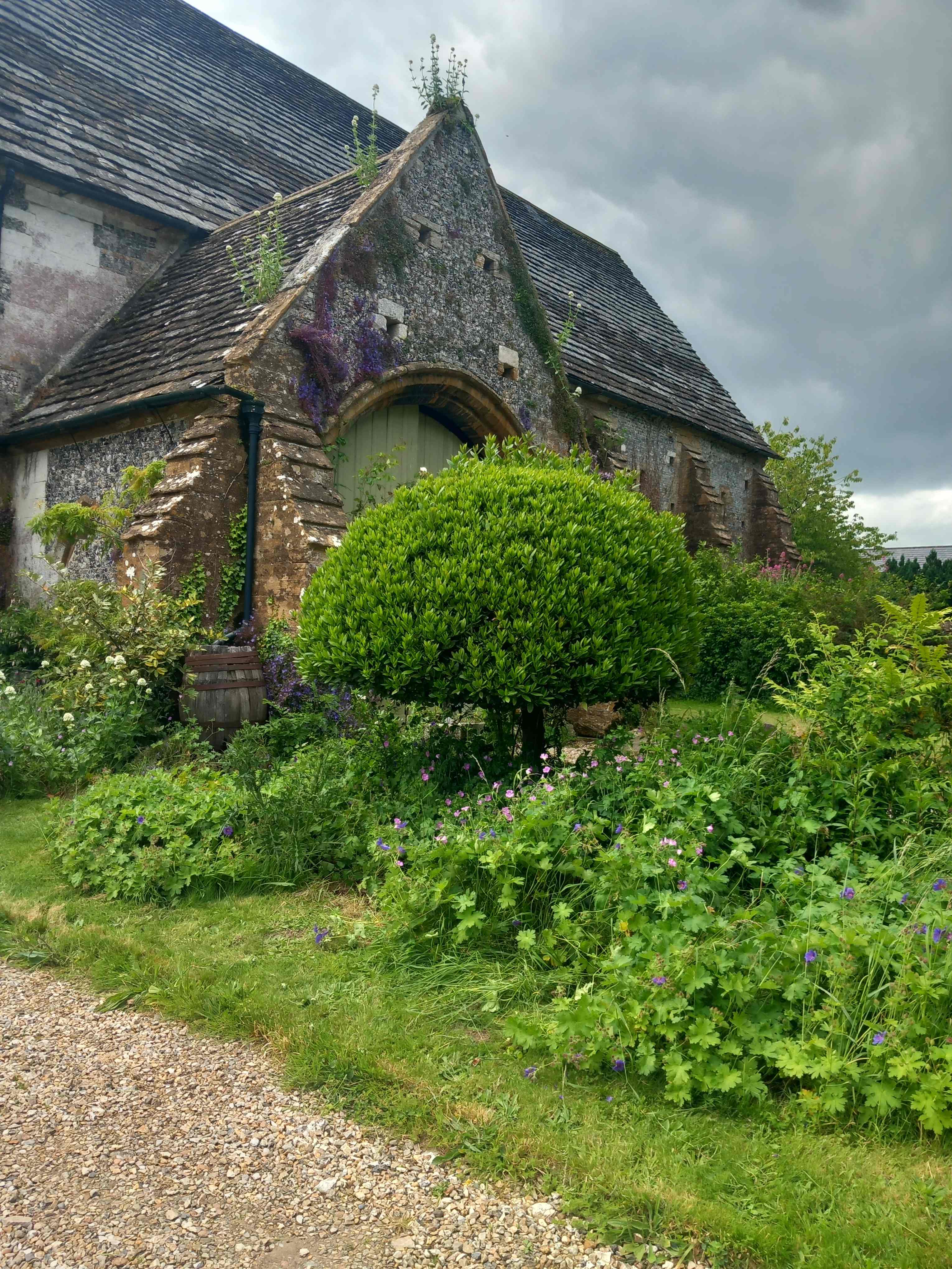 After a restorative cup of tea and excellent fruit scones at the vicarage we passed an open garden notice on the gate to Barton Farm. At the end of this ordinary looking driveway we were astonished to discover a large medieval tithe barn, constructed by monks in the 14th century and now partly converted into a private residence.