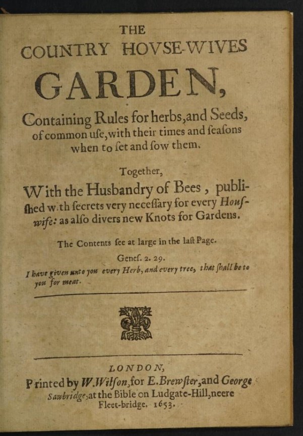 The Country House-wives Garden – the second section from a book entitled A new orchard and garden, or, The best way for planting, grafting, and to make any ground good for a rich orchard; particularly in the north parts of England by William Lawson (first published 1618) From the Biodiversity Heritage Library