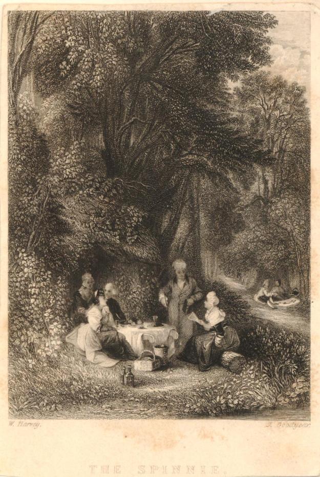 Who doesn’t love a summer picnic?  Here, in London, as soon as the sun begins to shine, it seems that every public green space, regardless of size, is pressed into service as a picnicking venue. Outdoor dining, in various forms, grew in popularity in the late eighteenth and early nineteenth centuries, alongside the fashion for day excursions to picturesque spots, landscape gardens and historic sites.