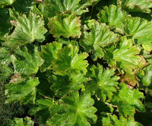 Damera peltata, sometimes called the umbrella plant, in the pond area.