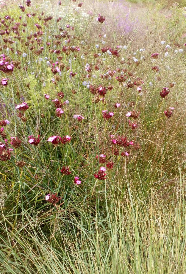 Lythrum (centre) with Dianthus carthusianorum, or Carthusian pinks in the foreground