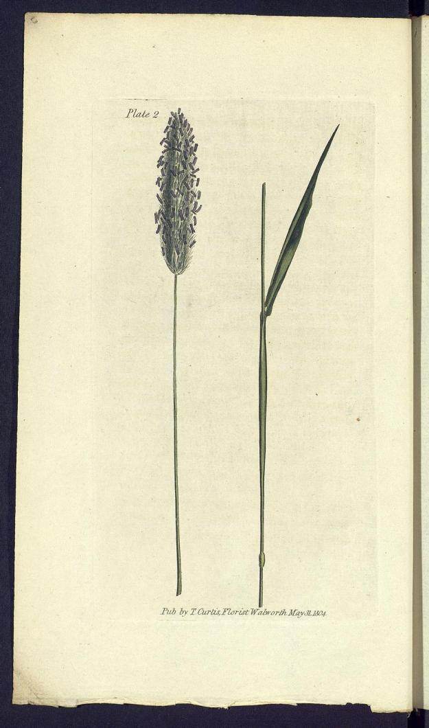 Alopecurus pratensis Meadow fox-tail grass (published by S Curtis, Florist, Walworth May 31 1804)