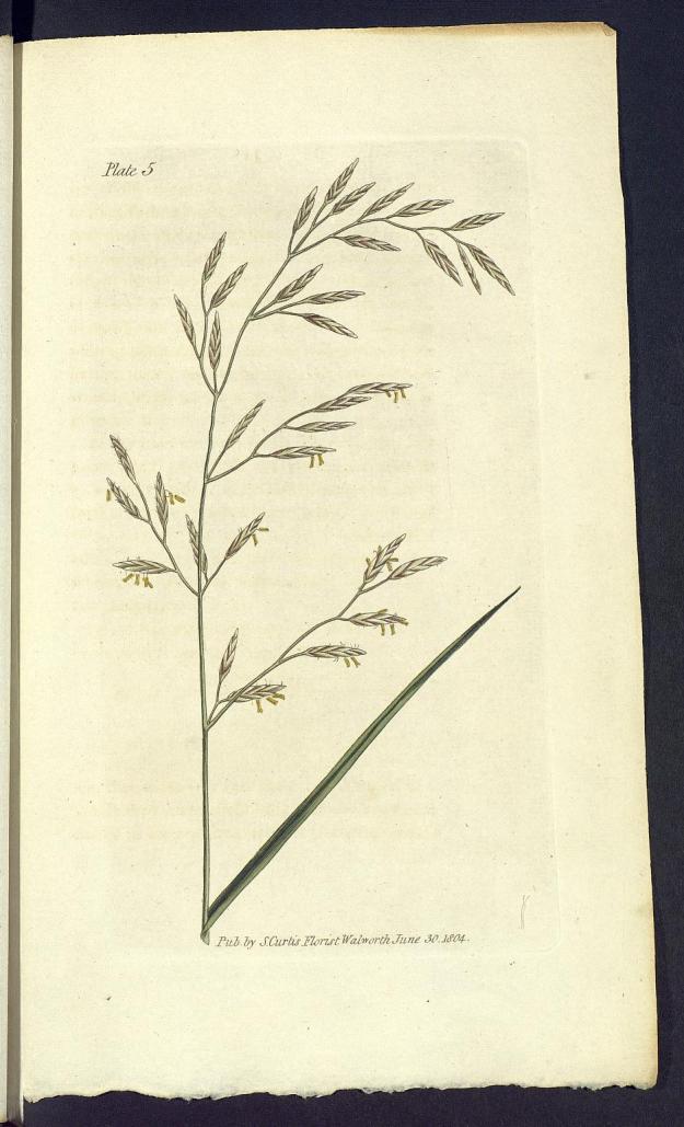 Poa trivialis Rough-stalked meadow grass (published by S Curtis, Florist, Walworth May 31 1804)