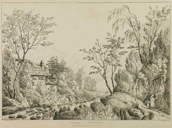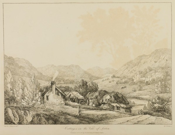 Cottages in the Vale of Lorton engraving by Rev Joseph Wilkinson from Select Views in Cumberland, Westmoreland, and Lancashire (1810)