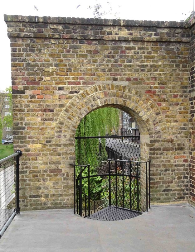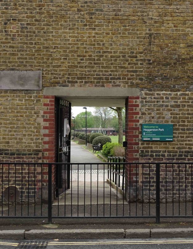 Haggerston Park is situated on land previously occupied by a gas works, and according to Hackney Council’s history of the park, the gas produced there for street and indoor lighting was ‘of offensive smell, unnatural brilliance and unfailing propensity to cause headaches.’ The gas works suffered bomb damage in World War Two and when the decision was made to develop the site into a park in the 1950s, some of its impressively high 19th century brick walls were retained as part of the design.