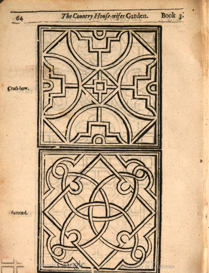 image04 ← Previous Next → Designs for knot gardens from The Country House-wifes Garden by William Lawson 1618 (re-printed in A Way to Get Wealth by Gervase Markham 1648)
